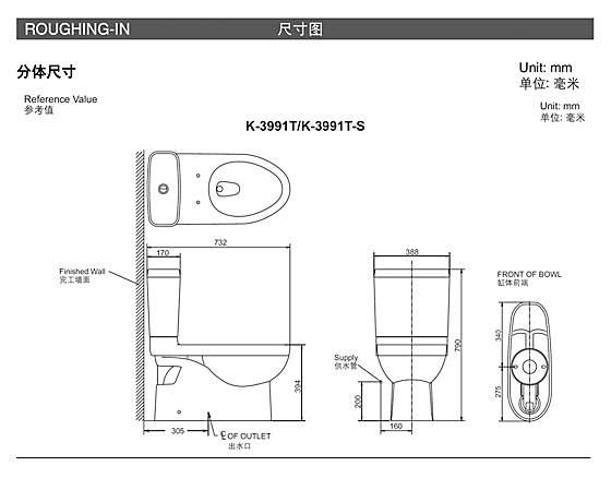 ·新增地排水 305/400mm坑距選擇,滿足不同浴室安裝需求。