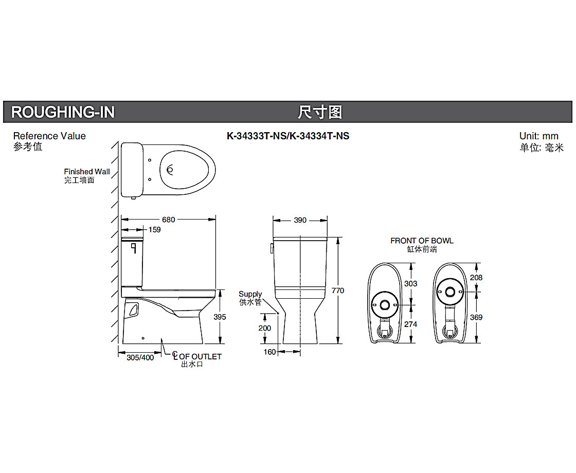 ·多種坑距選擇(地排305/400mm,墻排100mm),可滿足地排及墻排不同安裝需求