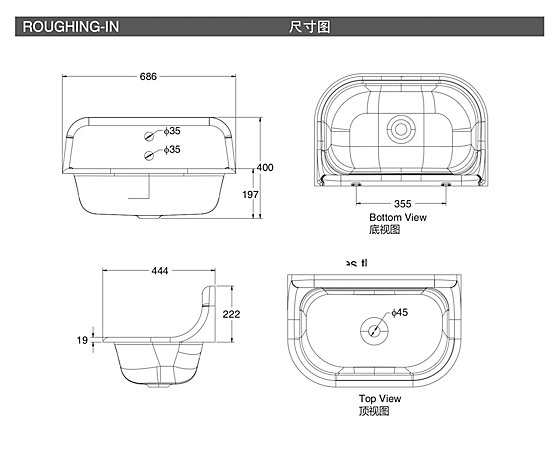 ·鉑克維鑄鐵臺盆需與卡諾克雙把手墻出水臉盆龍頭K-8892-RP搭配使用