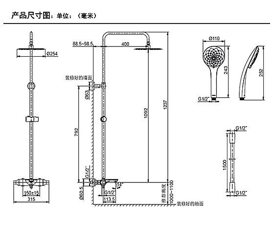 手持花灑尺寸:
