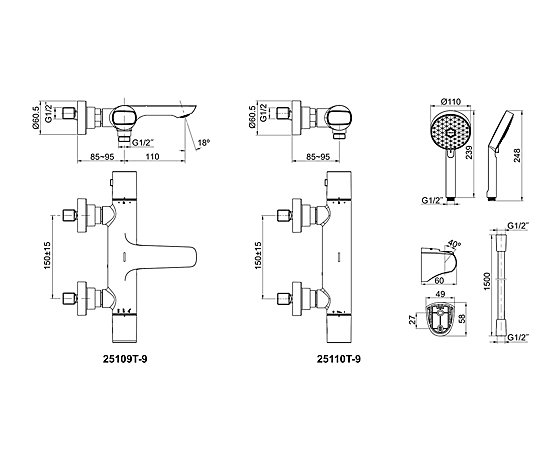 利奧 掛墻式恒溫 浴缸花灑龍頭( 致巧款)黑色