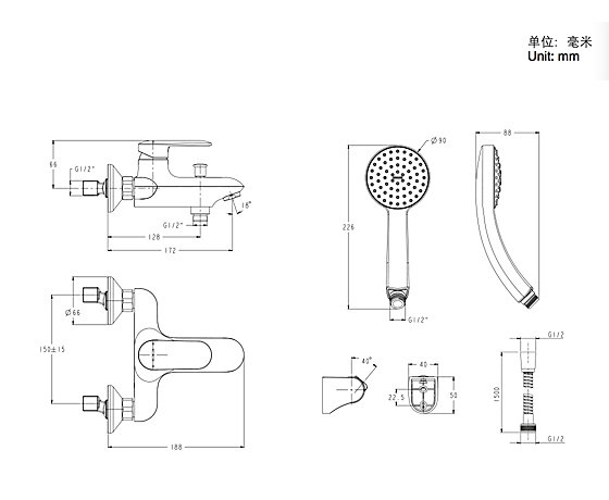 KUMIN?珂美掛墻式浴缸花灑龍頭