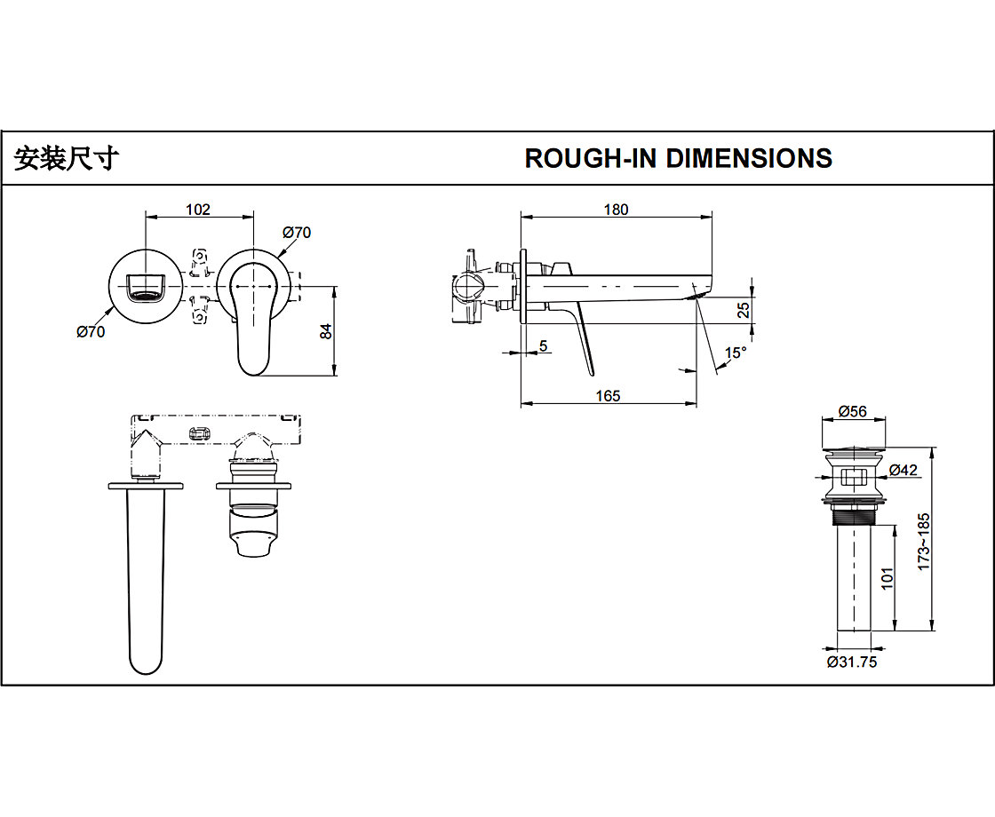 需搭配28028T-NA單把墻出水臉盆龍頭閥芯共同使用