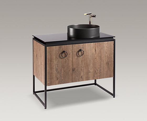 明仕900mm實木貼皮臺面-復古胡桃木(配圓盆)
