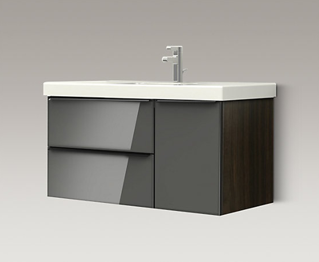 全新色系搭配,側板采用原木色,門板為鋁框深灰鏡面材質。