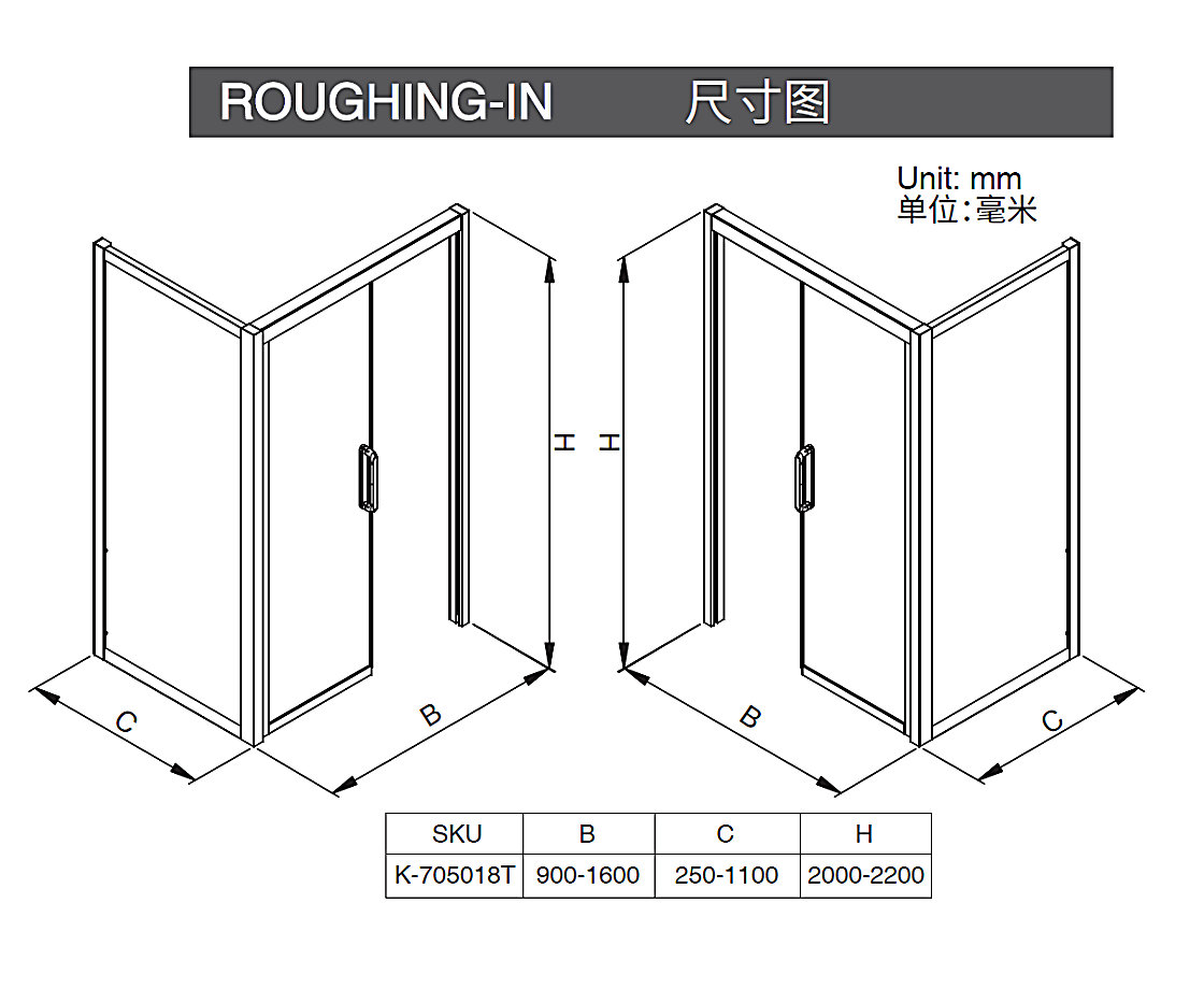 正面寬900-1600mm;側面寬250-1100mm;高度1850-2200mm