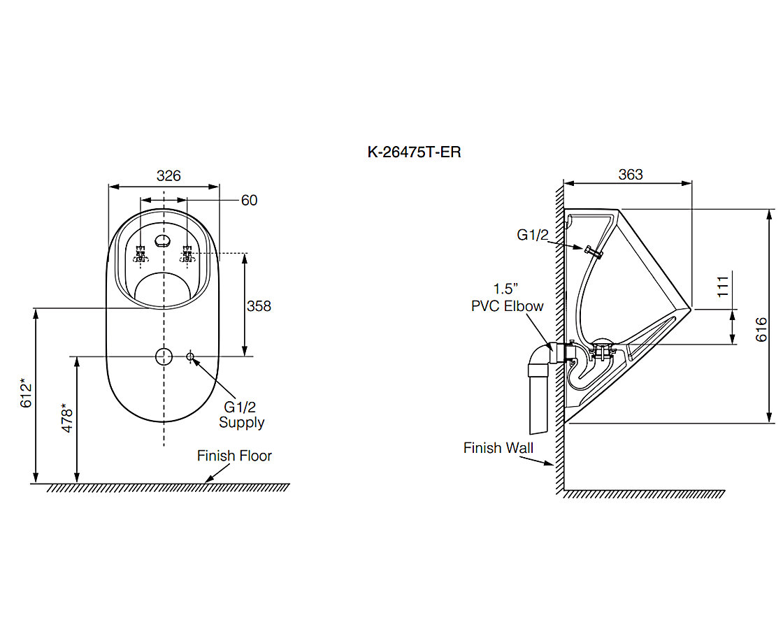 ·小巧緊湊,小便器寬度僅 326mm,節約更多使用空間