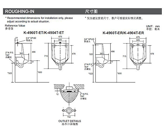 上接來水式小便器、直沖式?jīng)_水,包括51mmN.P.S.出水口、掛鉤、進出水配件及落水