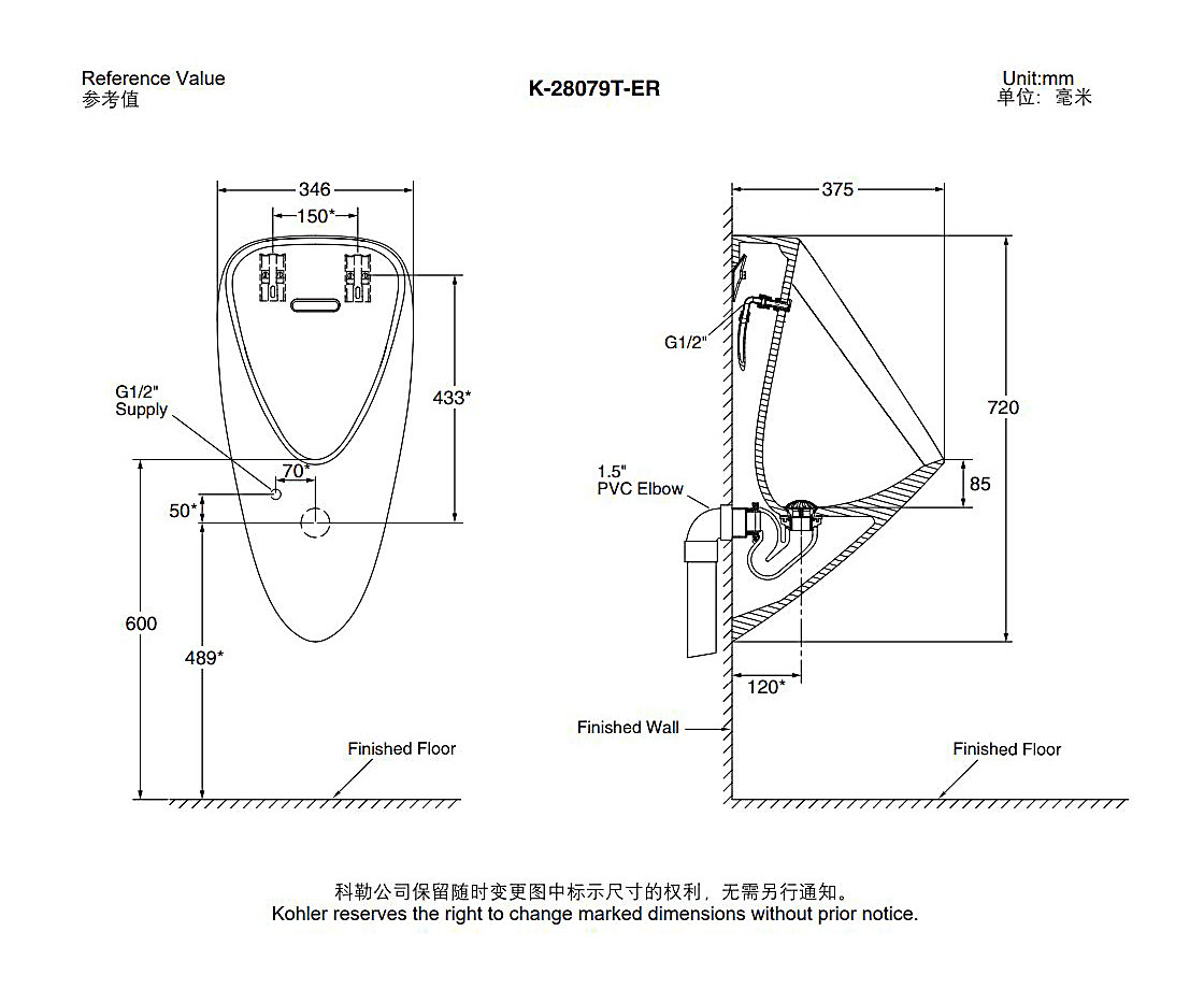 ·特殊設(shè)計(jì)的排污管結(jié)構(gòu),可輕松實(shí)現(xiàn)小便器安裝或拆卸