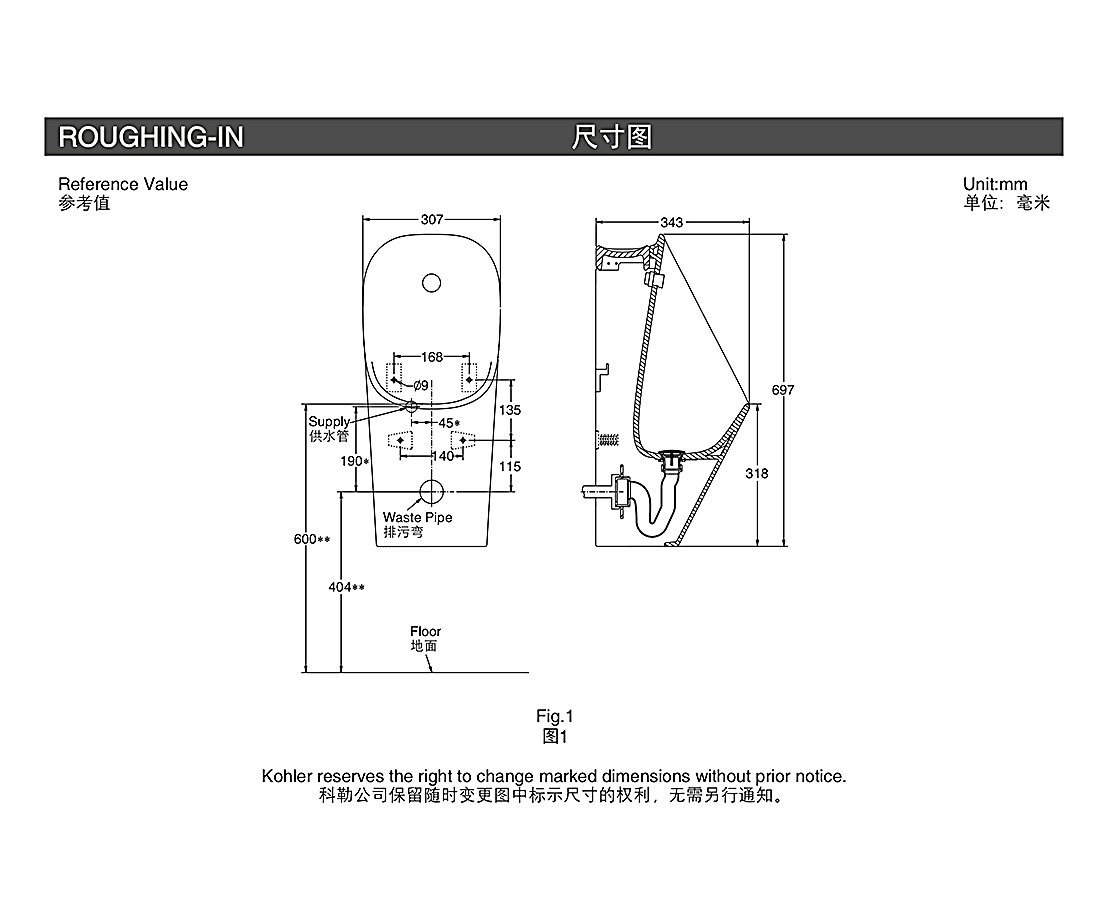 后接來水式小便器,自動感應直沖水,包括內使用交流電的電子感應沖水閥,掛鉤,進出水配件及落水