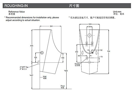 后接來水式小便器,自動感應直沖水,包括內裝電池的電子感應沖水閥,掛鉤,進出水配件及落水