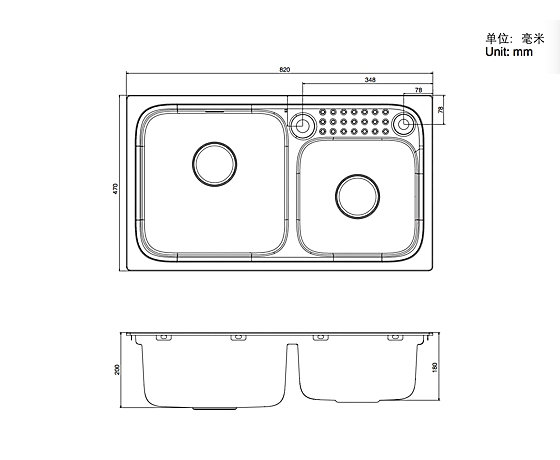 ·大槽:易清潔濾籃設計,傾倒廚余便利,雙層過濾,不易堵塞,按壓式彈跳開關,