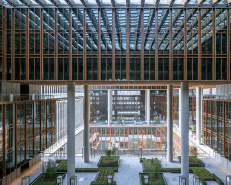 在北京奧林匹克公園的中心區,匯集歷史建筑精髓的北京中軸線上屹立起了一座全新的地標性建筑——北京亞洲金融大廈。作為亞洲基礎設施投資銀行總部的永久辦公場所,北京亞洲金融大廈由德國知名的gmp 建筑師事務所操刀設計,擺脫傳統金融的刻板枷鎖,以彰顯中華古老智慧的“魯班鎖”為設計理念,將濃郁底蘊的東方美學與簡約大氣的現代建筑風格完美結合,打造出氣勢恢宏的建筑群。