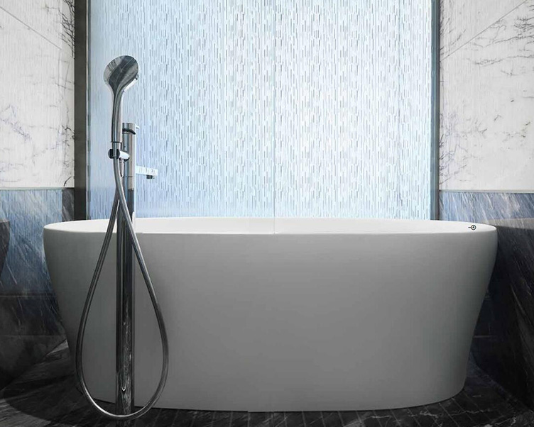 衛浴空間的風格與整體室內氛圍相呼應,中性色調呈現高級感,“法式時尚衛浴”的化身——雅泊丹楓衛浴系列成為浴室的點睛之筆。締造于1899年巴黎的雅泊丹楓是科勒旗下奢華衛浴品牌,它將法式精髓融入產品設計中,以高級定制般的匠心工藝向優雅致敬。雅泊丹楓臺下臺盆以精致優雅的造型與空間融為一體?,F代優雅的雅泊丹楓浴缸采用獨特的綺美石材質,環保健康、觸感溫潤;源于自然靈感的鵝卵石造型帶給人們回歸自然的親近感,令沐浴享受意猶未盡。