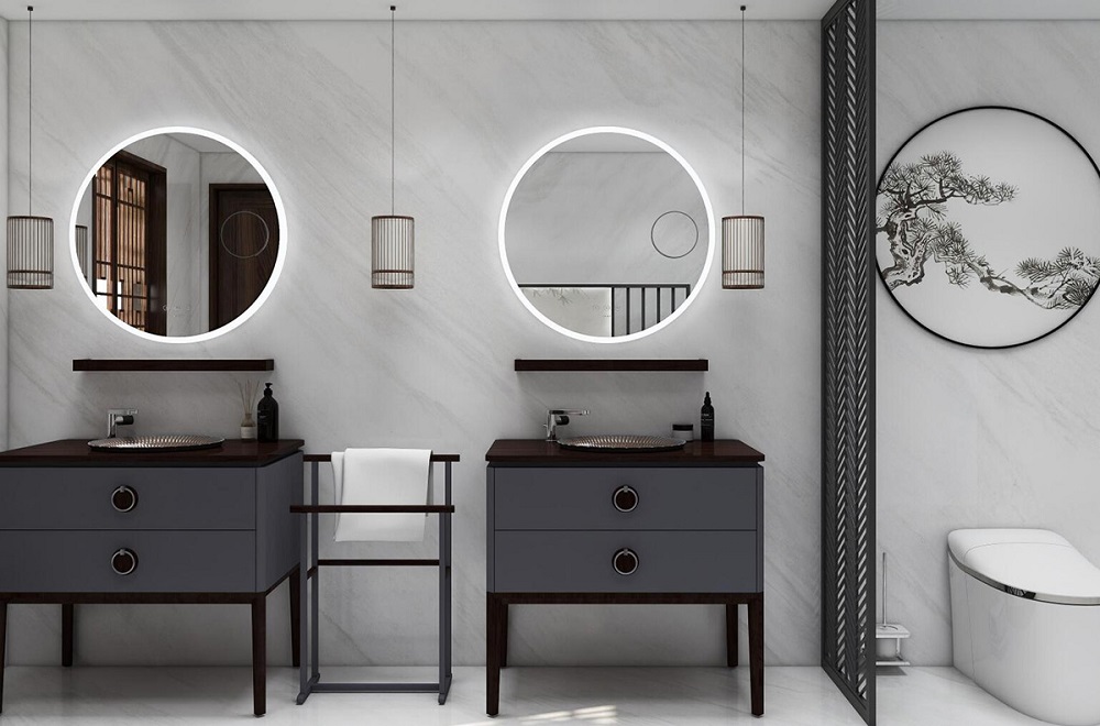 作為高端生態豪宅,麓湖的室內空間設計與自然渾然一體,無論客廳、餐廳、臥室,還是衛浴空間,都恰到好處地引入了自然生態景觀。自然通透的衛浴空間中,明亮的玻璃窗與簡約的室內設計風格交相呼應。