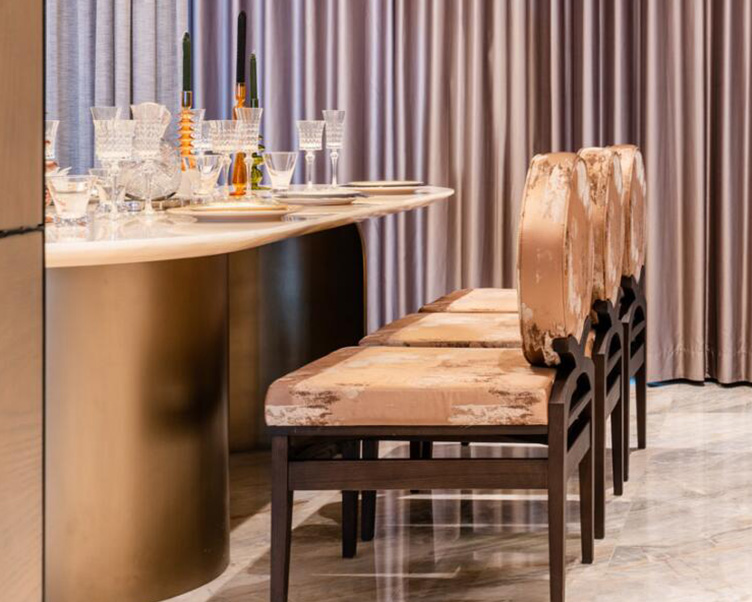 從陸家嘴海景壹號、蘇河灣天悅壹號到前灘海景壹號,中糧壹號系每一步都落在了上海“黃金三角”的核心區(qū)。如今,北外灘正值蛻變之際,大悅城控股與瑞安房地產(chǎn)聯(lián)手打造的中糧瑞虹·海景壹號項目,成為北外灘座壹號系產(chǎn)品。設(shè)計師從建筑中解讀了體塊關(guān)系,將建筑體塊中的水平感和塊面的縱橫感切割至室內(nèi),利用這種橫縱的咬合關(guān)系來塑造室內(nèi)的立面構(gòu)成。同時從建筑的玻璃磚得到靈感,將建筑語言延續(xù)到室內(nèi)空間中。通過建筑元素的衍生表現(xiàn)室內(nèi),虛實相間,空間從外到內(nèi)更具連貫性,藝術(shù)與自然、原始與精致、感性與理性并存。